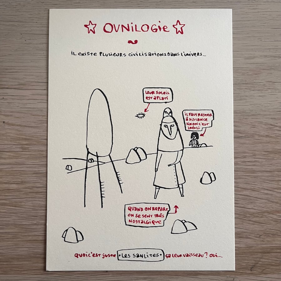 Plume, encre de Chine et encre Colorex rouge sur bristol crème.